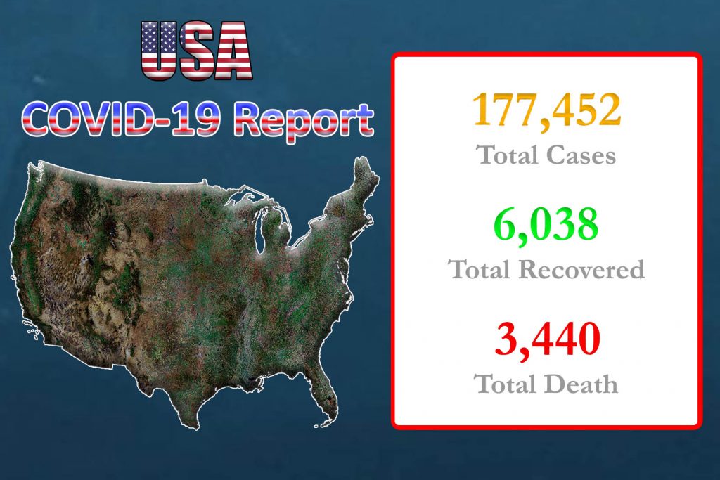 There are 177,452 total confirmed cases in the US. 6,038 people have been recovered and 3,440 death has been reported until now.