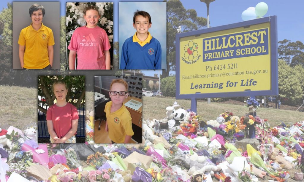 The five children who died are Addison Stewart, 11, Zane Mellor, 12, Jye Sheehan, 12, Jalailah Jayne-Maree Jones, 12, and Peter Dodt, 12.
