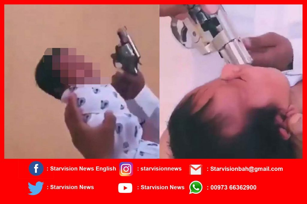 A video showing a Saudi man carrying a baby while firing a revolver in the air after which another man places the weapon in the infant’s mouth has gone viral on social media platforms. In the video, a man is seen holding a crying baby in one hand and firing a revolver with the other. After firing a few shots in the air a second man is seen taking the weapon, emptying the bullets and placing the weapon in the mouth of the wailing infant.