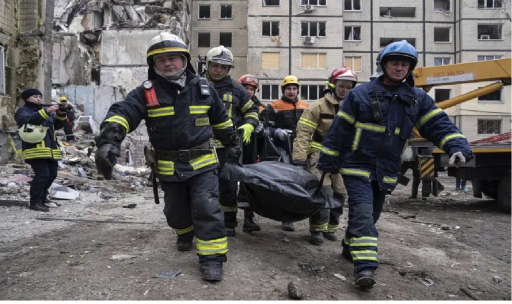 Ukraine : Ukrainian emergency crews on Monday sifted through what was left of a Dnipro apartment building destroyed by a Russian missile, placing bodies from one of the war’s deadliest single attacks in months in black bags and gingerly carrying them across steep piles of rubble.
